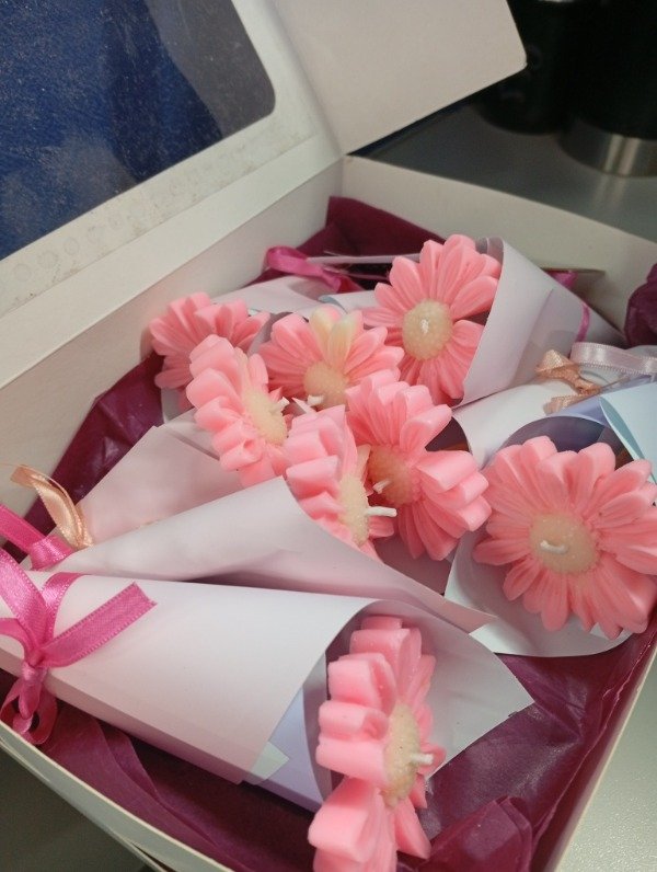 Velas de sojas colores y aromas a elección . Viene con un envoltorio de papel coreano también a elección y sujeto a disponibilidad
